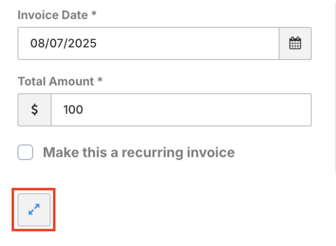 - To add an image to the invoice, click the expand icon at the bottom left OR the create and close on the bottom right: