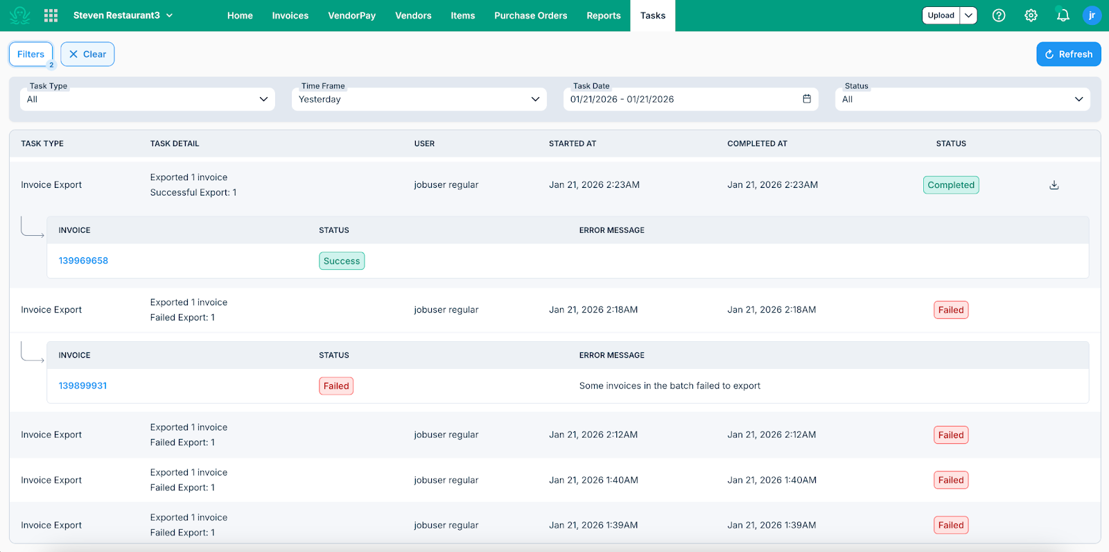 Task Manager provides visibility into long-running background tasks in Ottimate, starting with Invoice Export.