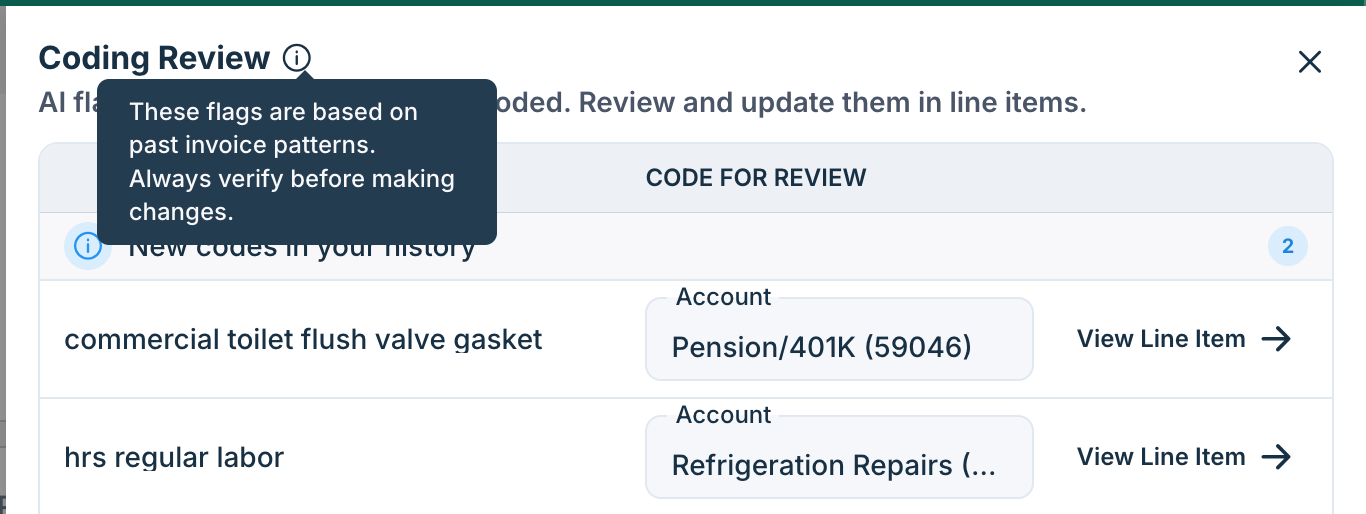 GL Coding Review helps you catch unusual coding patterns before invoices are finalized.